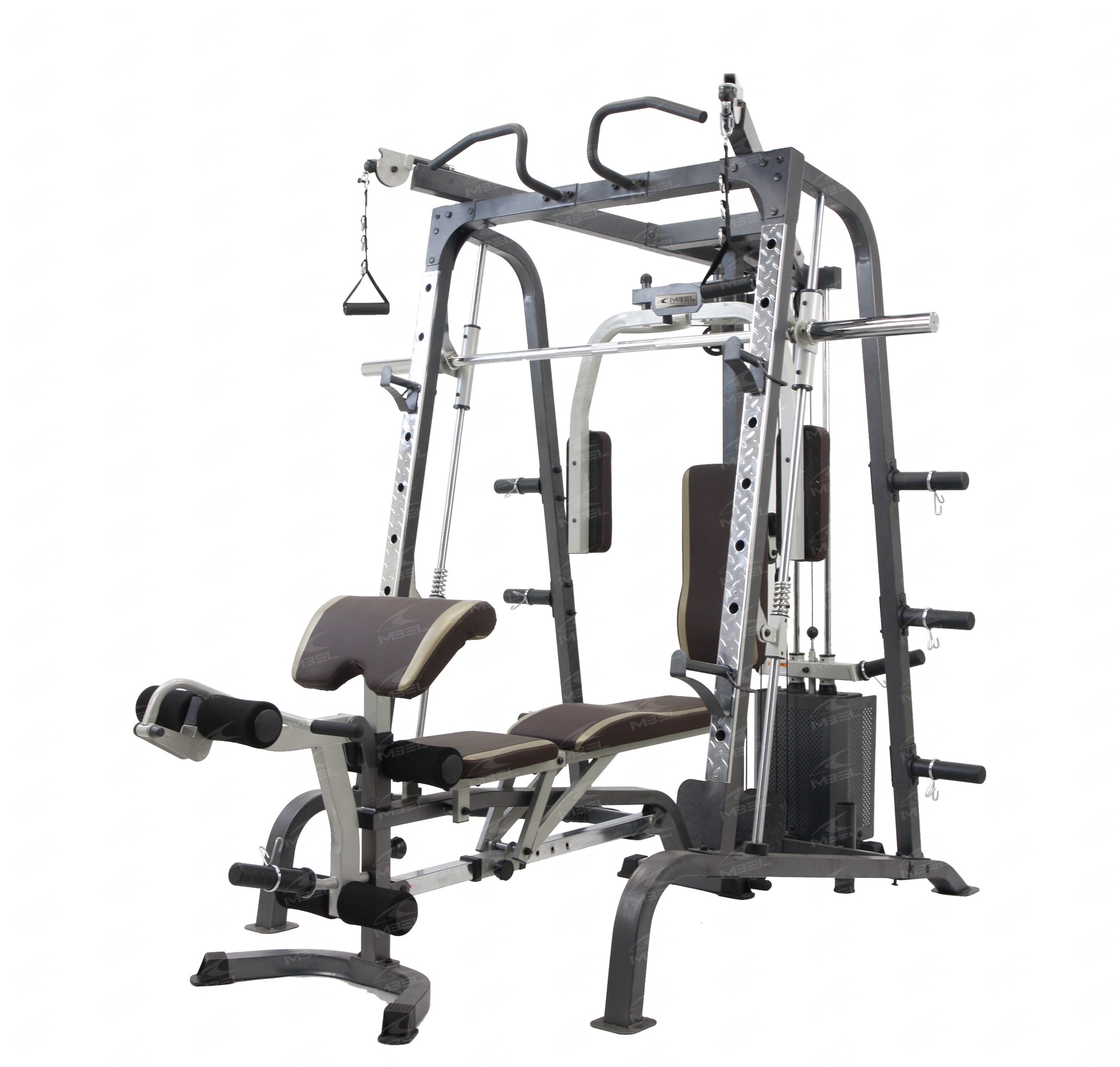 产品咨询The top of the IBL-S9010GH Smith machine is a dual high swivel pulleys system compatible with a wide range of gym accessories. These dual high swivel pulleys target your biceps, triceps and back muscles to strengthen and develop for raw power. The swivel pulley system has been designed to provide you with the freedom to customize your workout routine, and create tension targeting the major muscles in your upper body.