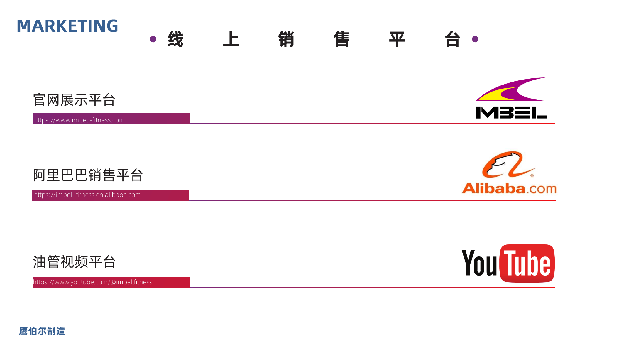 公司产品出口美国、欧洲及亚洲等80多个国家和地区,并长期行销全国20多个省市和自治区。公司自成立以来,先后获得了 “沃尔玛优秀国际供应商”、“中国出口企业成就奖”、“全国先进外商投资企业”、“省级守合同,重信用企业” 等荣誉证书。经过多年发展,国内外市场不断扩大,经济效益逐年增长,已成长为国内力量健身器材行业的专业制造和引领者。